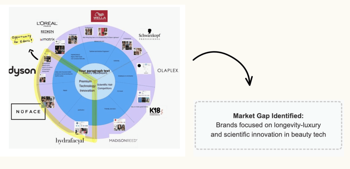 To begin our go-to-market strategy, I organized a comprehensive competitive analysis of 15+ beauty companies, creating detailed evaluation matrices across innovation, pricing, and market positioning. My systematic approach to organizing this research revealed there was a gap in the market for brands that focused on longevity-luxury and scientific innovation; this became our strategic opportunity.