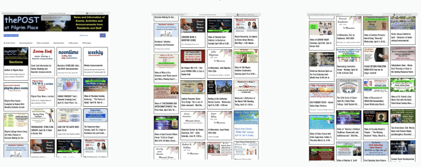 In Fall 2024, I enrolled in a Human-Centered Design course at Pomona College where my team of five students partnered with Pilgrim Place, a retirement community in Claremont, California, on an intergenerational bridge-building project. We identified a critical disconnect between two communities existing just four blocks apart: college students seeking mentorship and life guidance, and retirees eager to share their wisdom and experience. Through stakeholder interviews and user research, we uncovered a mutual need for cross-generational connection and designed solutions to bridge this gap between the Claremont Colleges and Pilgrim Place communities.